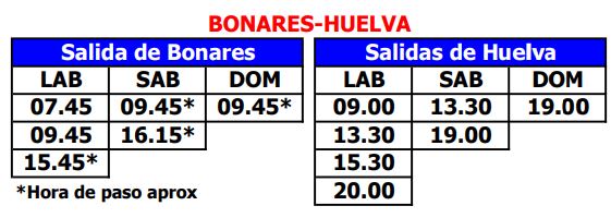 Horarios de autobuses Bonares-Huelva-Bonares.