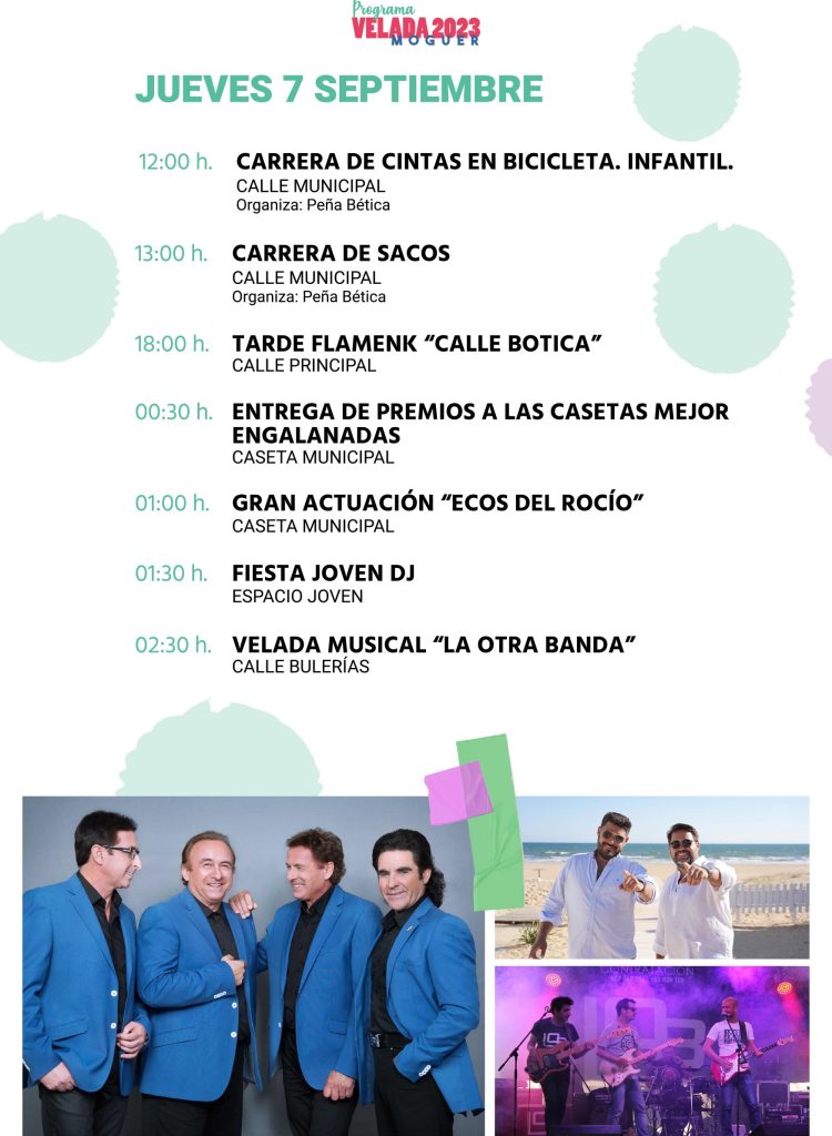 Moguer inició este jueves su Velada 2023 en honor de su Patrona, la Virgen de Montemayor. El recinto ferial en el que se levantan más de 200 módulos de casetas registró ya una gran animación en el primer día de unas fiestas que se prolongan hasta el domingo.